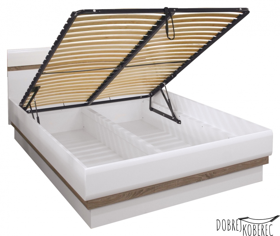 Moderní a elegantní nábytek v kombinaci dubu sonoma a bílé barvy. Na první pohled zaujmou hlavně originálně řešené úchytky. Celý systém disponuje také systémem tichého dovírání dvířek a zásuvek (SOFT CLOSE). Korpusy jsou vyrobeny z kvalitní laminové desky a fronty z MDF s bílou fólií.